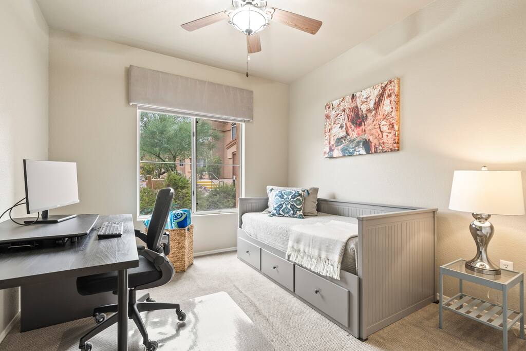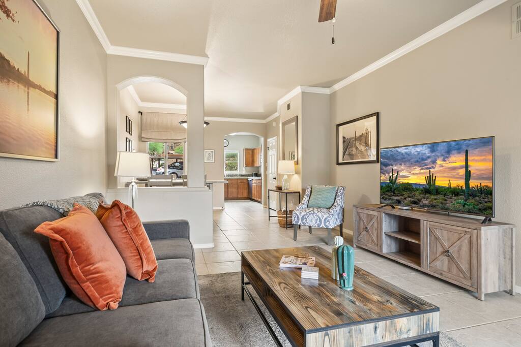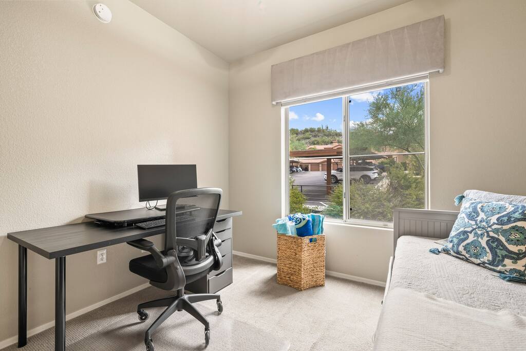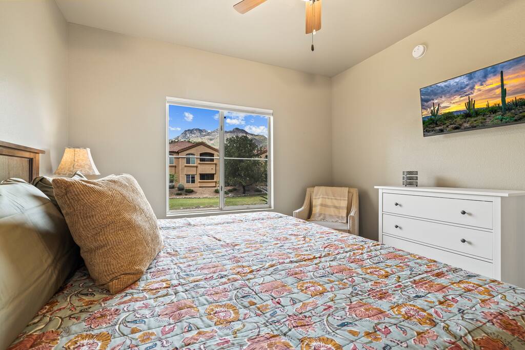 Standout features of the condo & community: *Gated secure complex *Heated pool/spa *Updated fitness center w/ cardio and weight equipment *Loungers and outdoor seating *Fire pit and BBQ areas *First floor unit with mountain views *Fully stocked with cookware, utensils, & bakeware, renovated kitchen *Fast Wifi, dedicated desk space, office chair. 24' monitor, standing desk *Smart TV w/ streaming *Walk-in closet *Second bedroom features two twin trundle beds which can convert into a second King! *In-unit washer/dryer *Charming patio overlooking Catalina Mountains *Close and covered dedicated parking space